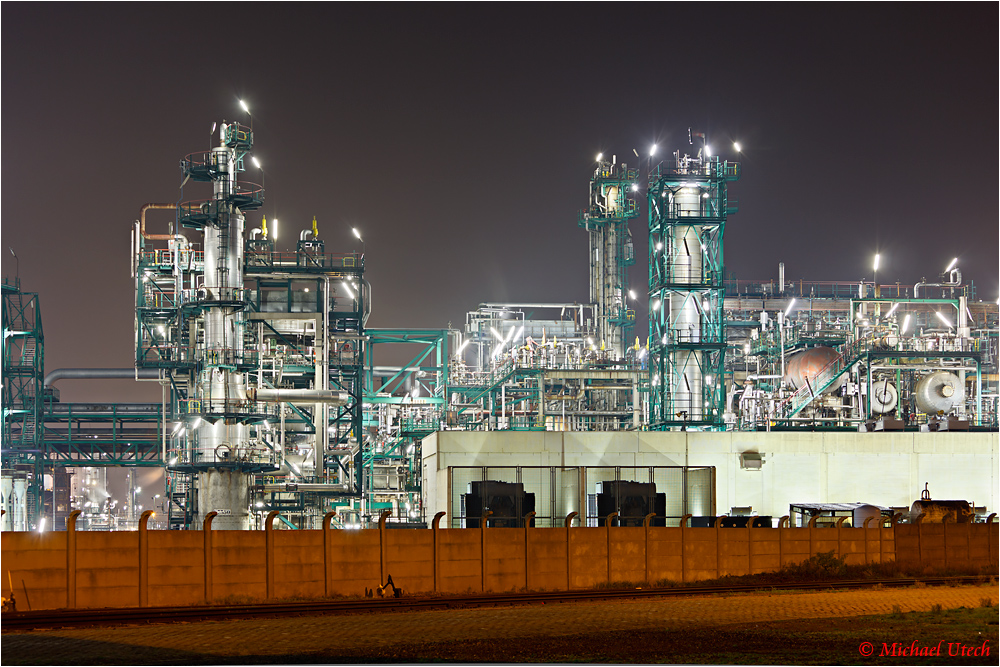 Am nördlichen Ende der Raffinerie sind die Bauwerke etwas kleiner.