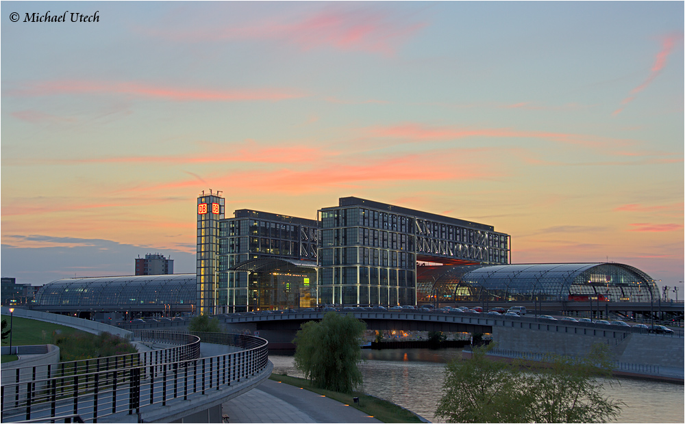 Der neue Bahnhof gegen den Sonnenuntergang. Ist ein HDR, deswegen sieht es auch etwas unrealistisch aus.