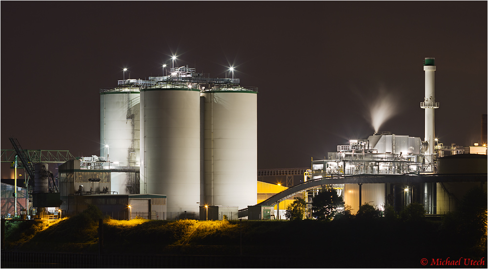 Etwas weitere Ansicht mit ein paar Tanks oder Silos.