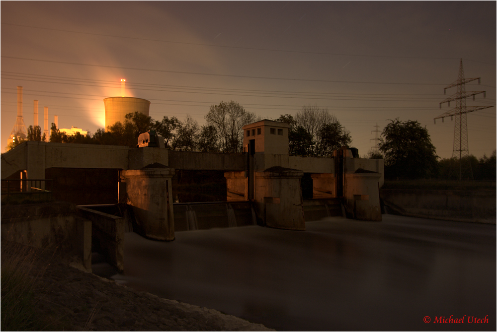 Ein Lippewehr in der Nähe des Kraftwerks mit sehr langer Belichtung.