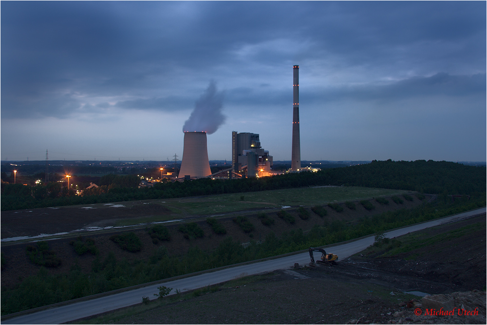 Graue Wolken über dem Kraftwerk.