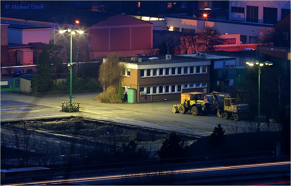 Ausschnitt aus einem Gewerbegebiet an der A43. Man beachte das enorm wichtige Parkverbotschild...