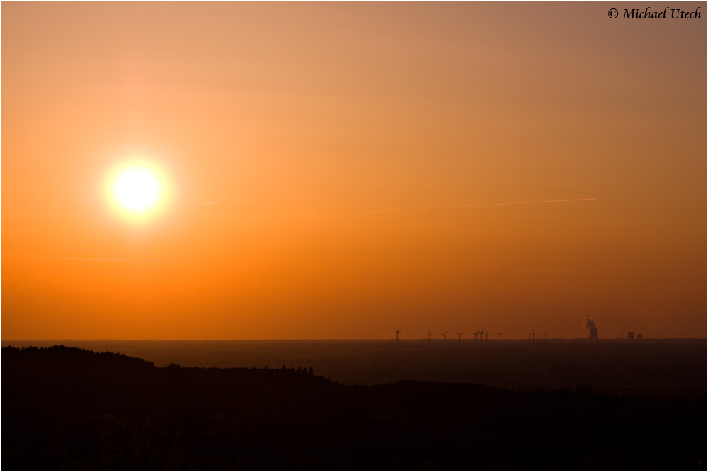 Von der Halde aus sieht man zahlreiche Windparks sowie das etwa 30km entfernte Kernkraftwerk Emsland in Lingen.