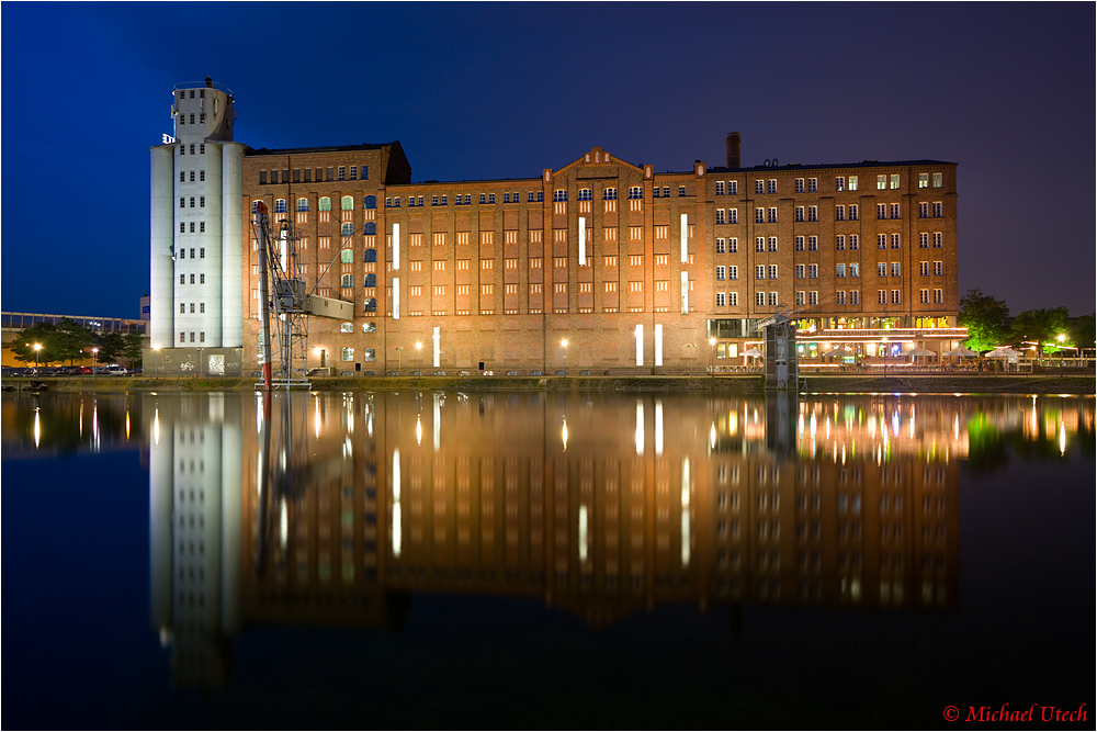 Die Küppersmühle mit fast glatter Spiegelung.