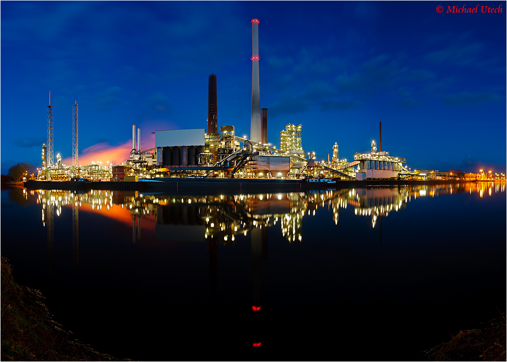 Doppelreihiges Panorama mit kompletter Spiegelung, leider ist der hohe Kamin da etwas allein.