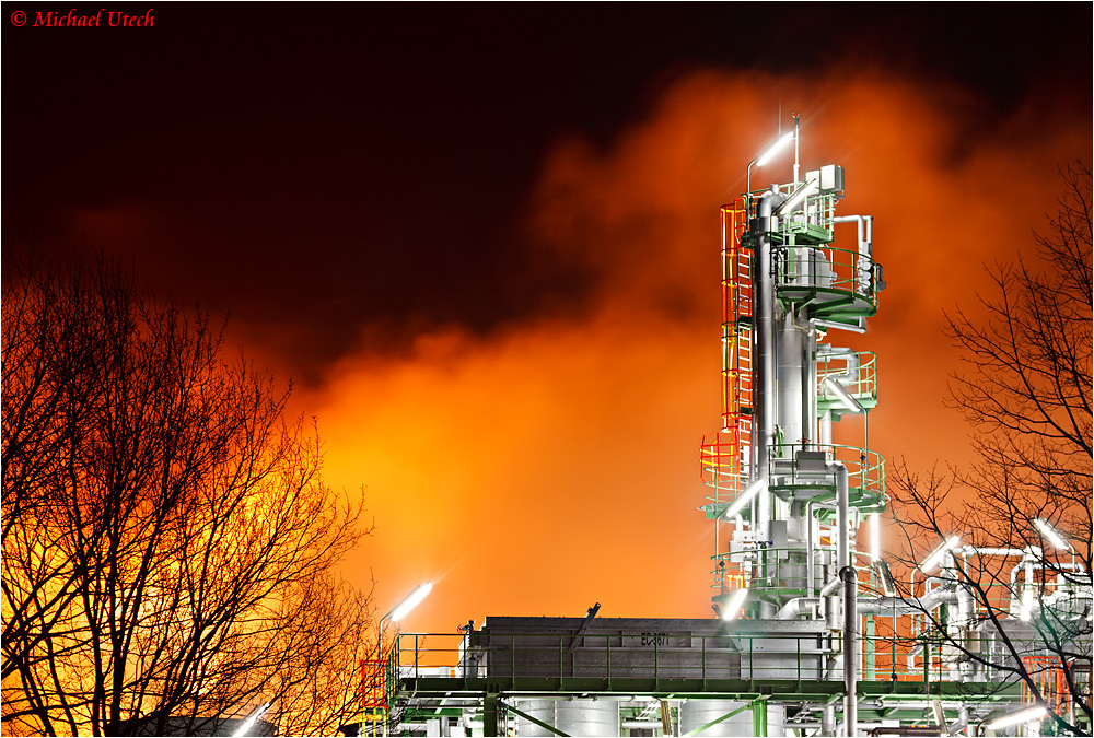 Ein paar Schritte weiter bringt man die nächsten Bauten vor den leuchtenden Dampf.
