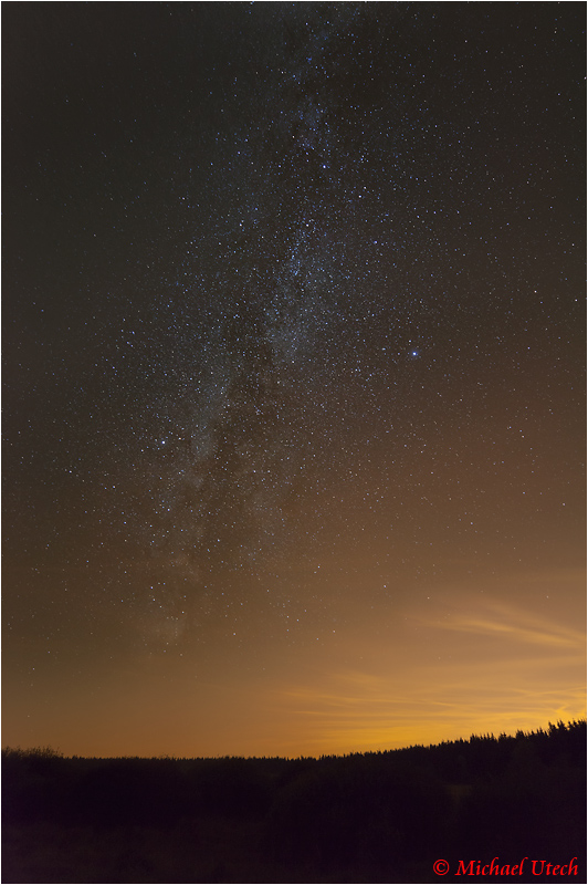 Mit Blick Richtung Süden war ein Teil des Milchstraßenzentrums im Süden, aber leider auch ein paar leichte Wolken, die jegliches Licht von Städten reflektieren. Hier vermutlich aus Lüttich oder anderen Regionen.