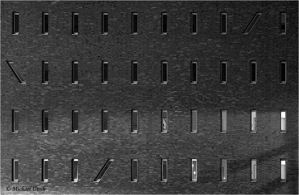 Der Architekt hatte wohl schon einen über den Durst getrunken ;-) Leider weiß ich nicht genau zu welchem Komplex diese Wand gehört.