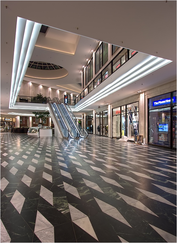 In den Arkaden, hier findet man recht interessante Architektur. In dem einen Laden rechts wurde leider gerade gewerkelt.