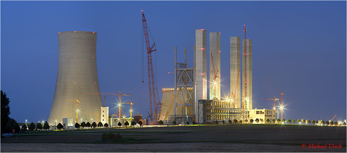 Panoramaansicht der Baustelle mit dem Tele. Die Scheinwerfer an den Kränen sind allerdings brutal, so dass man nicht viel länger warten kann für einen dunkleren Himmel.