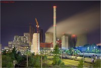 Die Anreise von Wesel dauerte mit dem Auto wie geplant etwa eine Stunde, bei der Baustelle befindet sich ein eigens eingerichteter Besucherparkplatz. Da ich zuvor die Gegend ein wenig erkunden wollte, war ich bereits mittags vor Ort und habe zunächst einmal einen ausgiebigen Rundgang um Baustelle und Kraftwerk gemacht. Dabei ist mir genau südlich des Kraftwerks eine Geländekante (vermutlich Teil einer alten Abraumhalde) aufgefallen, die einen um etwa 15m erhöhten Standpunkt mit freier Sicht bietet. Diese Position war dann auch mein Ziel für die Nachtaufnahmen, da die meisten anderen Perspektiven dort schon hundertfach abgelichtet wurden. Nach Abschluss der Aufnahmen dort war ich dann noch kurz auf der Brücke zwischen den beiden Kraftwerken, um noch eine der Standardansichten zu "kopieren".