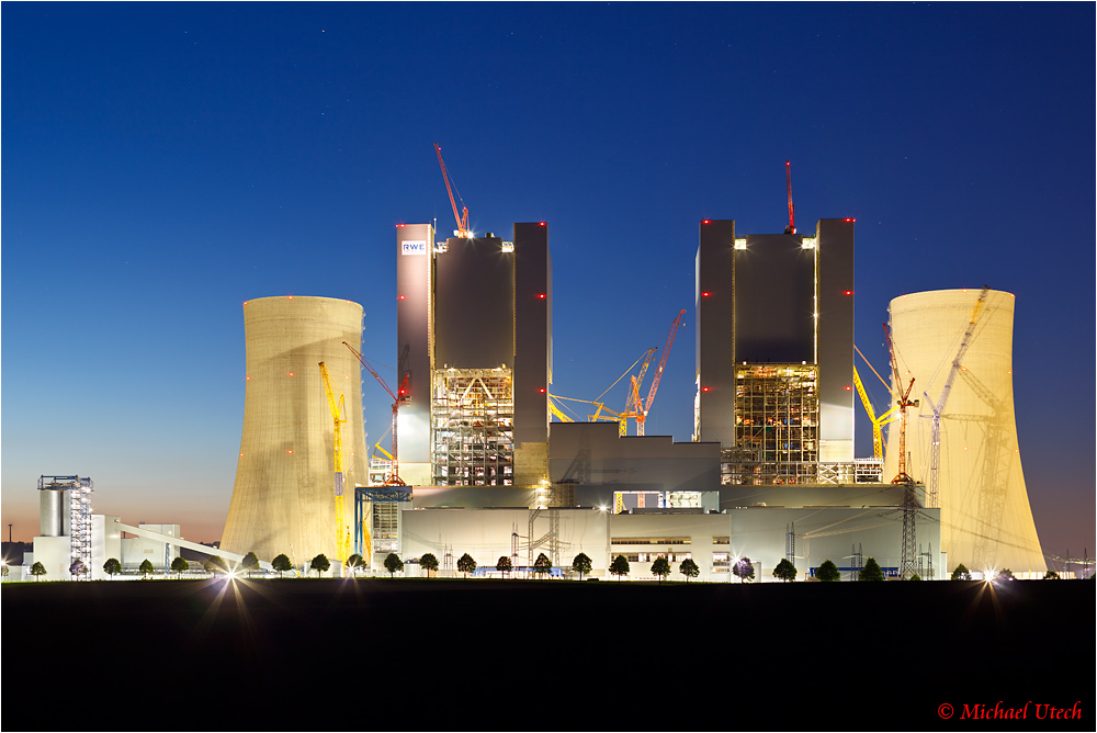Das neue Kraftwerk, Kühltürme und Blockgebäude haben ihre volle Höhe erreicht.
