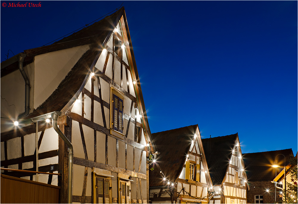 Die Dächer der Fachwerkhäuser, anders bekommt man die geparkten Autos nicht aus dem Bild.