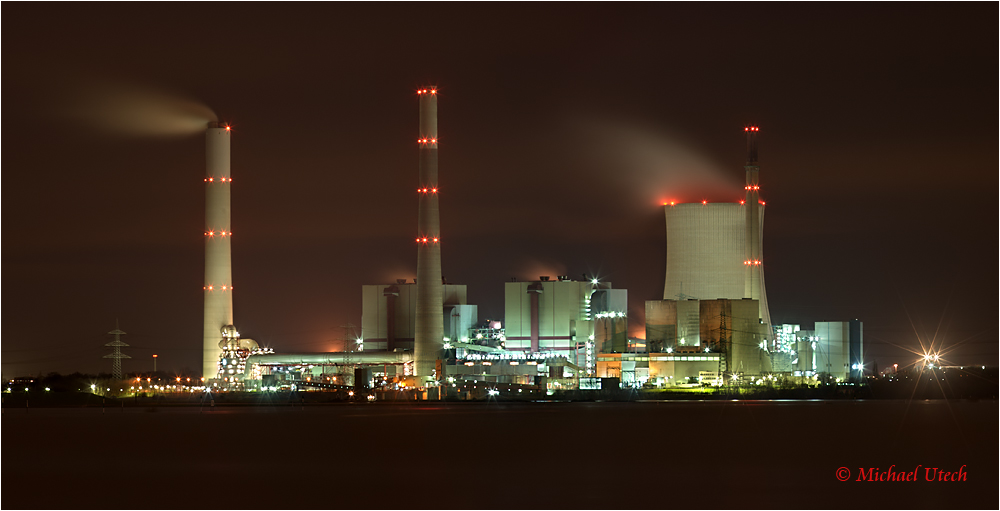 Sicht zum Kraftwerk Voerde, durch das Hochwasser waren sämtliche Wiesen verschwunden.