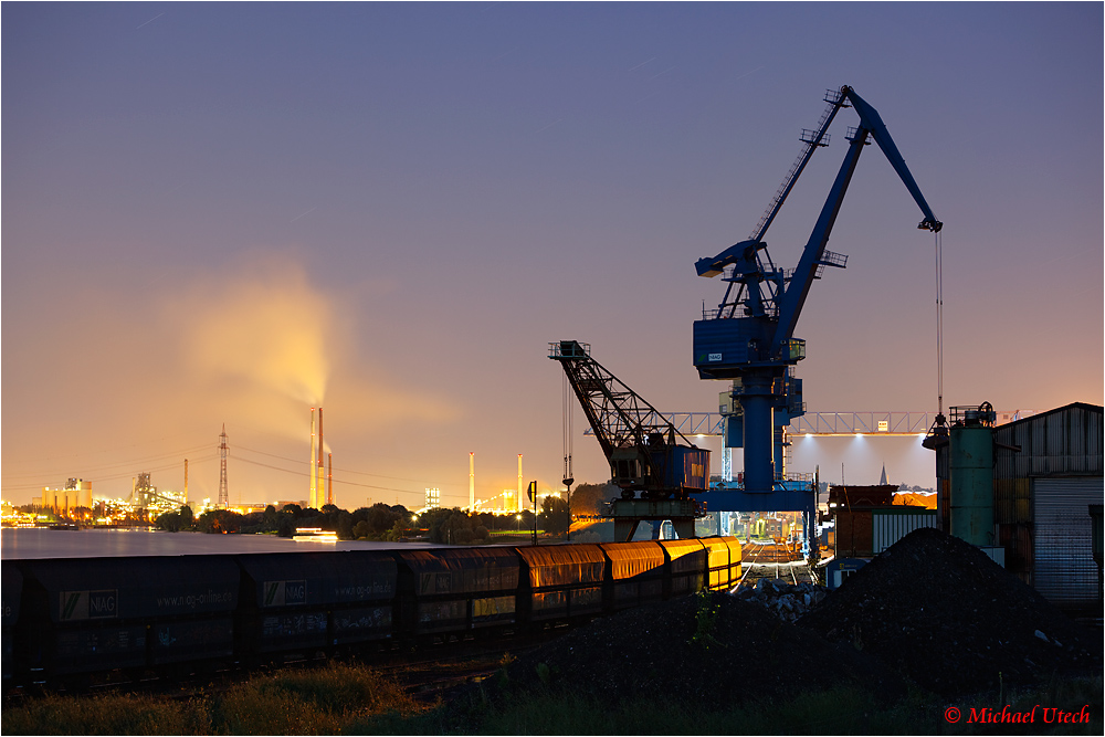 Der Kohlehafen Orsoy mit geparkten Zügen.