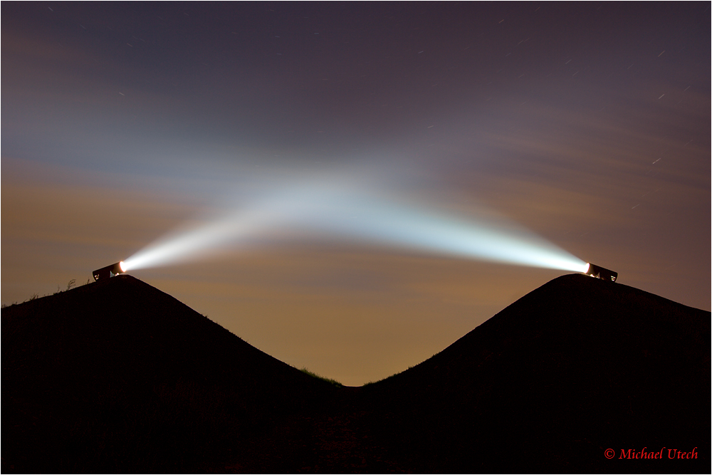 Die beiden Scheinwerfer vom Haldenplateau aus gesehen.