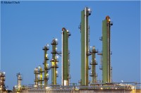 Das petrochemische Werk der Sasol Chemie Germany GmbH liegt in Moers direkt südwestlich der Halde Rheinpreussen, ist aber von selbiger nicht einzusehen. Fotografisch gut zugänglich ist das Werk dagegen von einem kleinen Deich am Eurotec Gewerbegebiet aus. Hier gibt es im seitlichen Bewuchs eine ganze Menge offenbar absichtlich freigehaltener Lücken, die einen hervorragenden Blick über den Zaun erlauben.