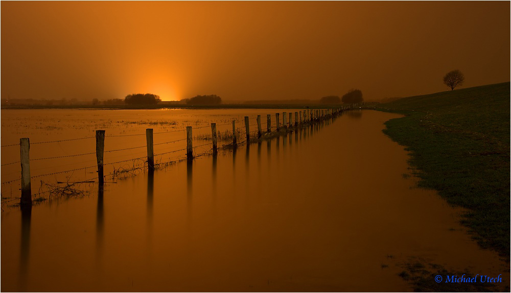 Blick über die Wasserfläche am Deichfuß Richtung Eversael.