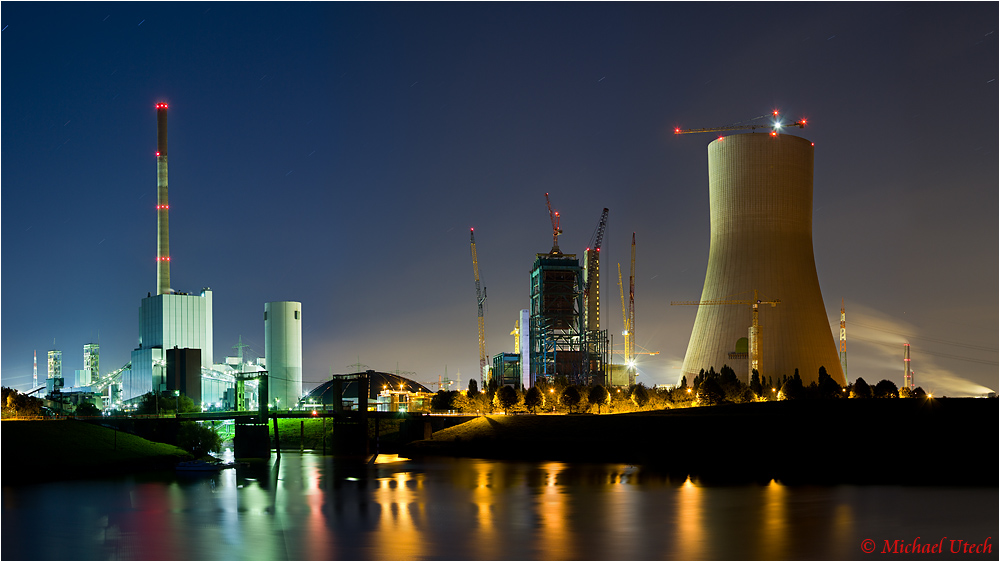 Panorama ohne Spiegelung zum Schluss der blauen Stunde.