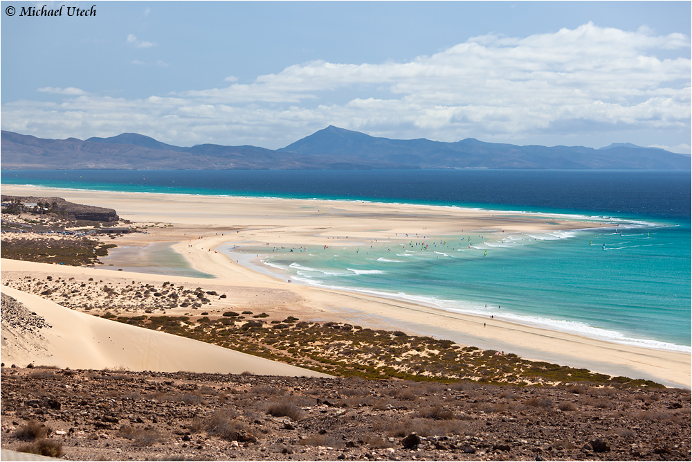 Weitere Ansicht mit der Küstenlinie im Hintergrund. Die Lagune wird vor allem von Windsurfern benutzt.