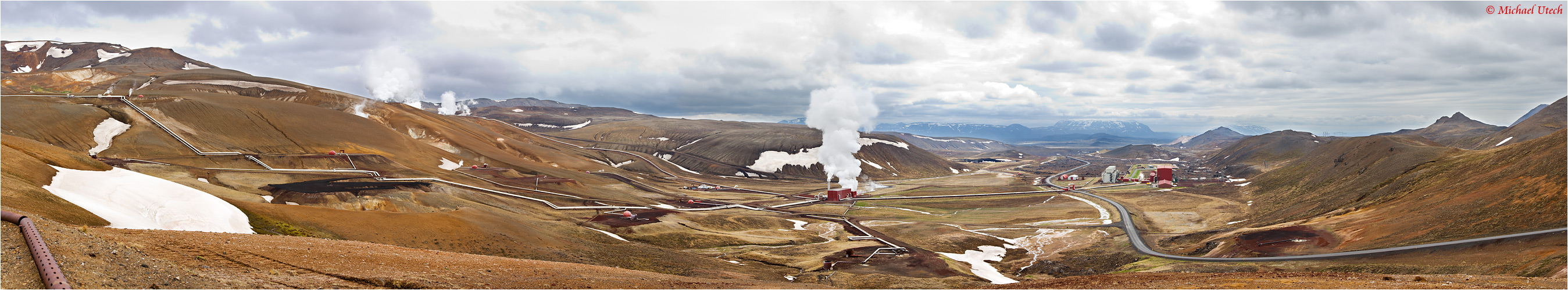 Endlose Rohrleitungen und Bohrlöcher bilden das Geothermalkraftwerk in Krafla.