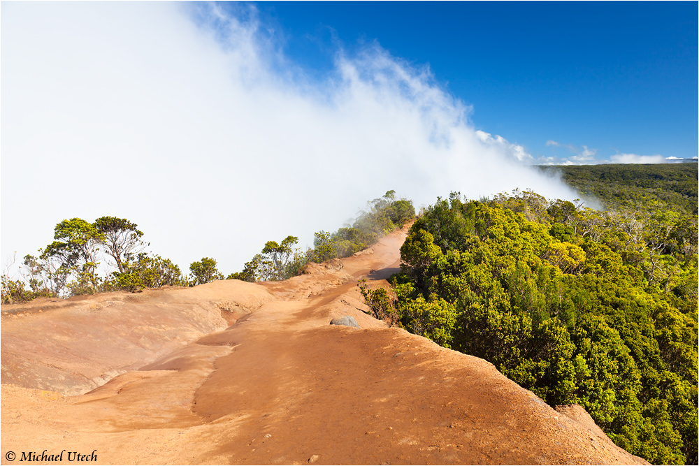 Der Beginn des Pihea Trails, links das unsichtbare Kalalau Valley und rechts das zentrale Hochland mit Regenwald.