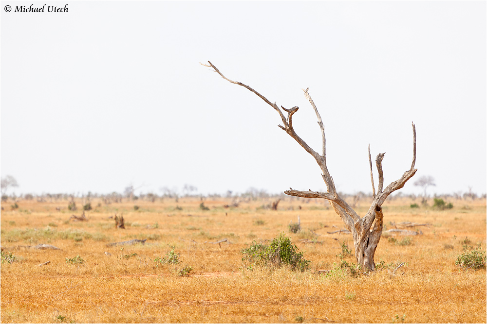 Nachmittags ging es in die andere Richtung, wo zunächst mal eher trockenes Land und von den Elefanten ruinierte Bäume zu finden sind.