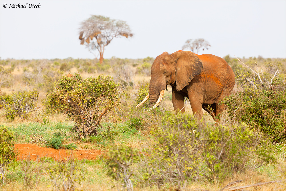 Ein einzelner Elefant lief langsam durch die Büsche. Im Tsavo-East halten die Elefanten eher Abstand weil es dort noch immer zu viele Elfenbeinjäger gibt.