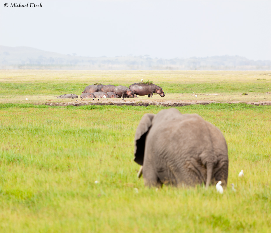 Weit im Westen des Parks gab es dann noch eine Gruppe Nilpferde zu sehen, die in einem kleinen Wasserloch rumtrampelten.