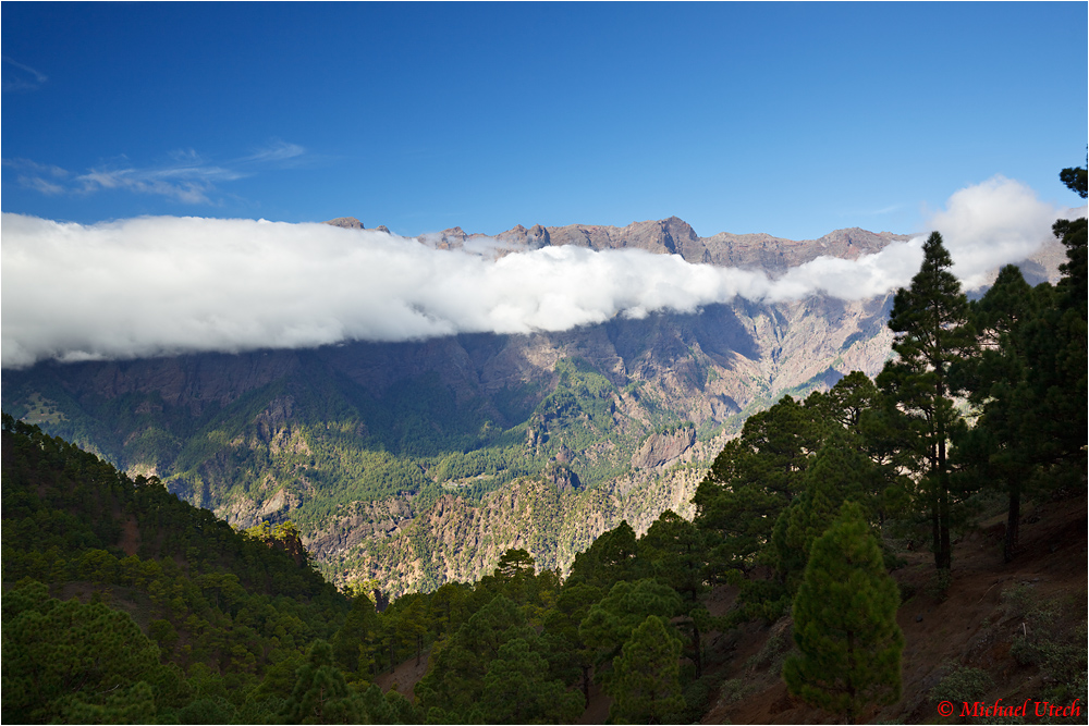 Immer wieder ziehen Wolken durch die Caldera de Taburiente, man kann auch Pech haben und gar nichts sehen je nach Wetterlage.