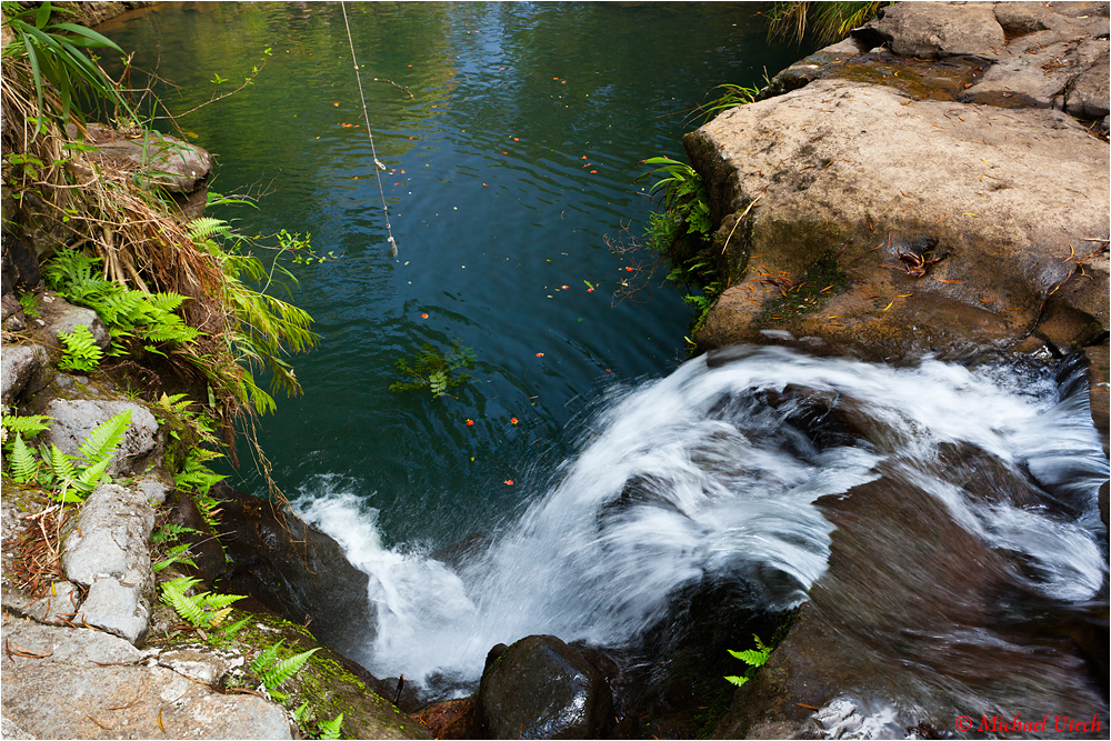 Ein kleiner Wasserfall und ein Seil zum Tarzan Spielen.
