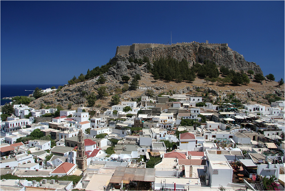 Blick zur Akropolis von Lindos.