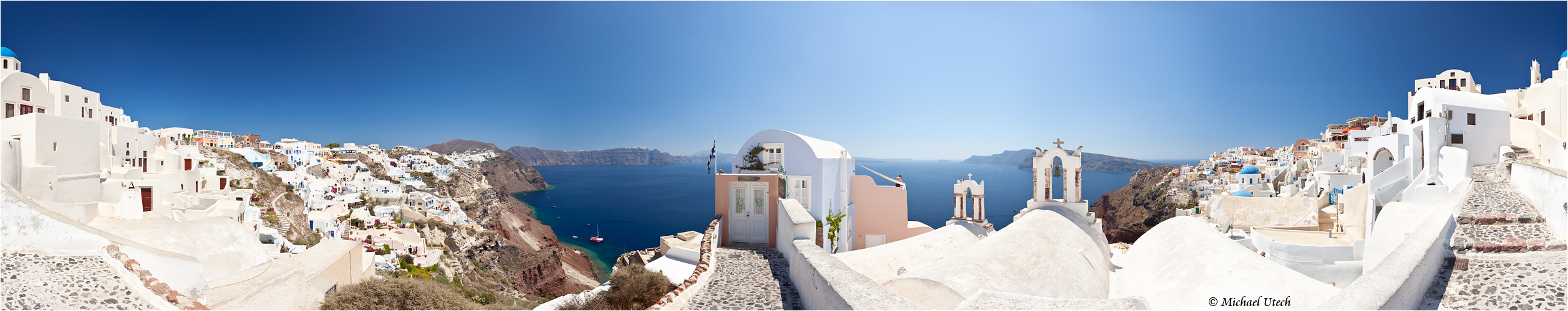 Rundumpanorama mit Blickrichtung Caldera - nur während die anderen Touristen Mittagessen waren konnte ich hier kurz ungestört fotografieren, ansonsten steht das Stativ auf dem schmalen Weg zu sehr im Weg...
