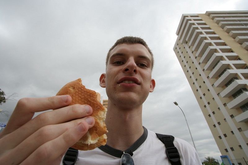 Hmm, lecker. Kleiner Snack, während Swantje den kleinen Supermarkt stürmt.