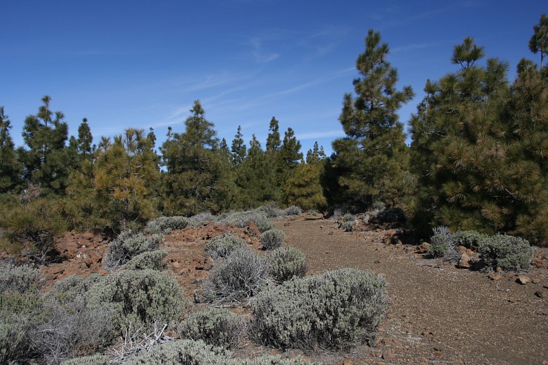 Nach einem kurzen Marsch nahezu parallel zur Straße durch das Vulkangestein geht es in dieses kleine Wäldchen.
