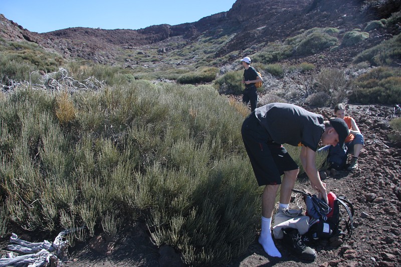 Ohne Wind wurde es auf dem Gestein schnell ziemlich heiß, also ist auch Markus mal in seine kurzen Hosen geschlüpft.