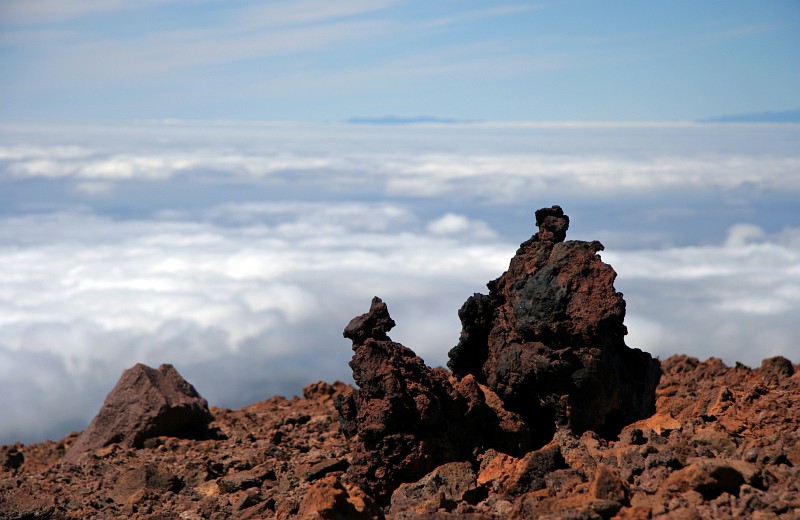 Manche Steine bildeten interessante Figuren. Hinter den Wolken La Palma.