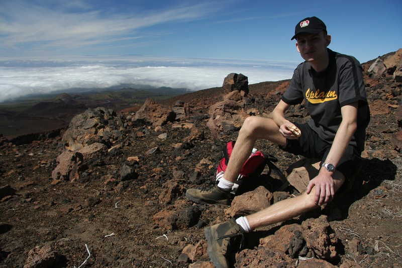 An diesem Aussichtspunkt beim kleinen Krater schmeckt es natürlich gleich noch einmal so gut.