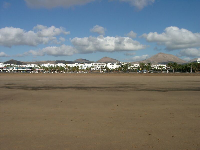 Blick vom ewig breiten Strand auf Puerto del Carmen.
