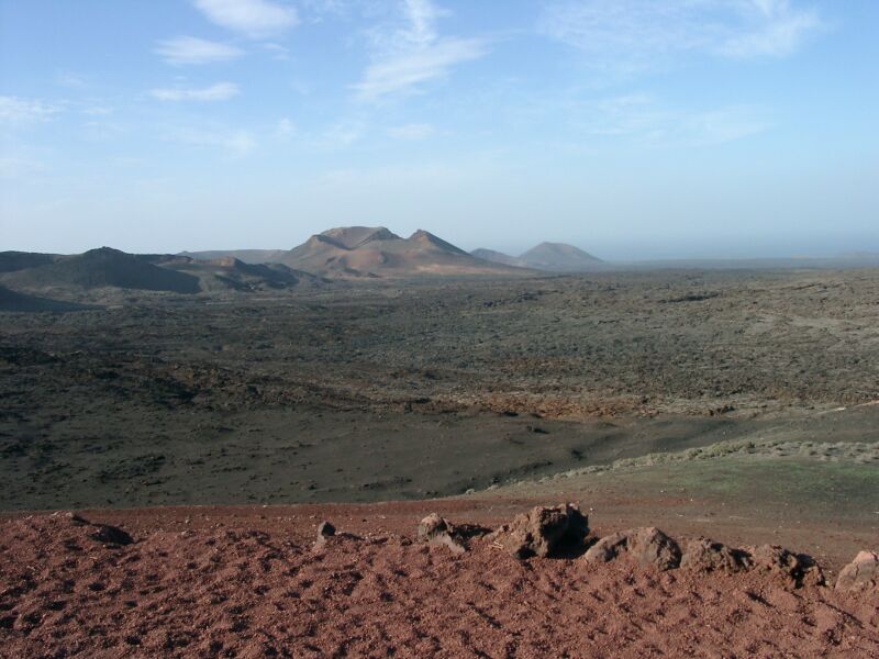 Die Vulkanlandschaft vo oben. Überall ist betreten verboten, einerseits, damit alles sauber bleibt und zweitens zum Schutz der Touristen. Es gibt wohl diverse Stellen, wo sonst schonmal die Schuhsohlen als geschmolzene Gummihäufchen zurückbleiben...