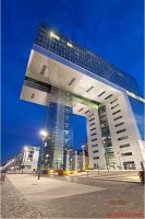 sind, sind für den Rheinauhafen die Kranhäuser. Diese sind etwa 60m hoch und sollen an die alten Kräne im früheren Hafen erinnern. Obwohl
