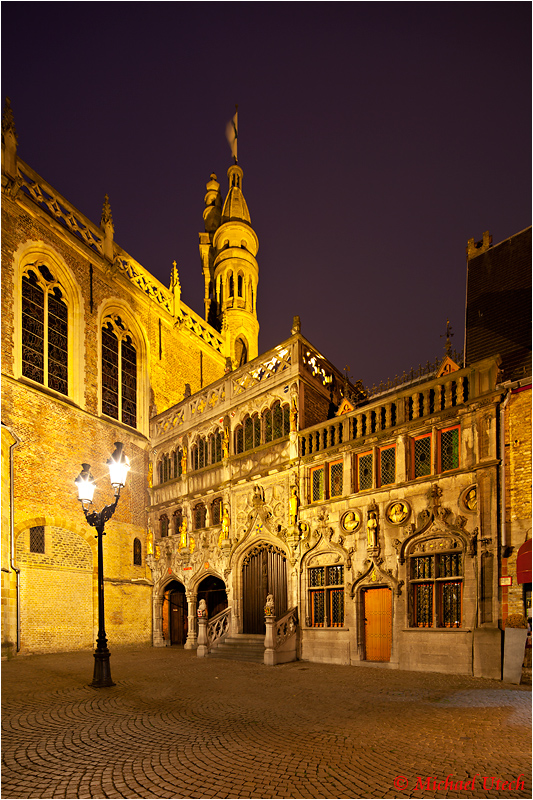 Die Heilig Blut Basilika bei Nacht.