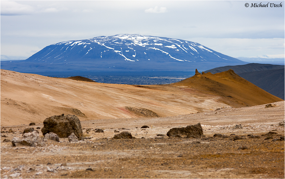 Blick vom Námafjall zu einem Vulkan über dessen Namen ich mir leider nicht ganz sicher bin.