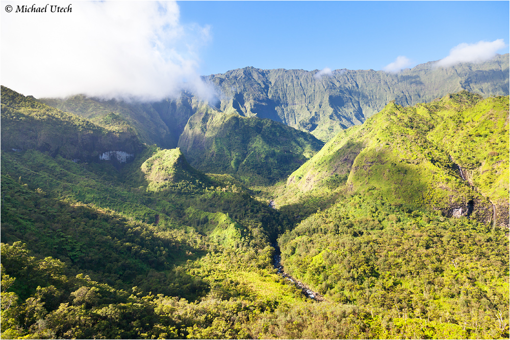 Blick durch ein Tal im Inland - hier kommt man nur per Helikopter hin.