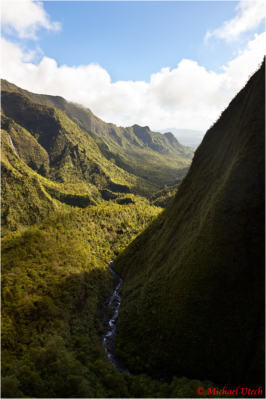 Der Helikopter dreht eine Runde durch den Einschnitt - der Name Blue Hole kommt wohl daher, dass man am Ende des Weges nur noch einen kreisrunden Ausschnitt blauen Himmels sieht.
