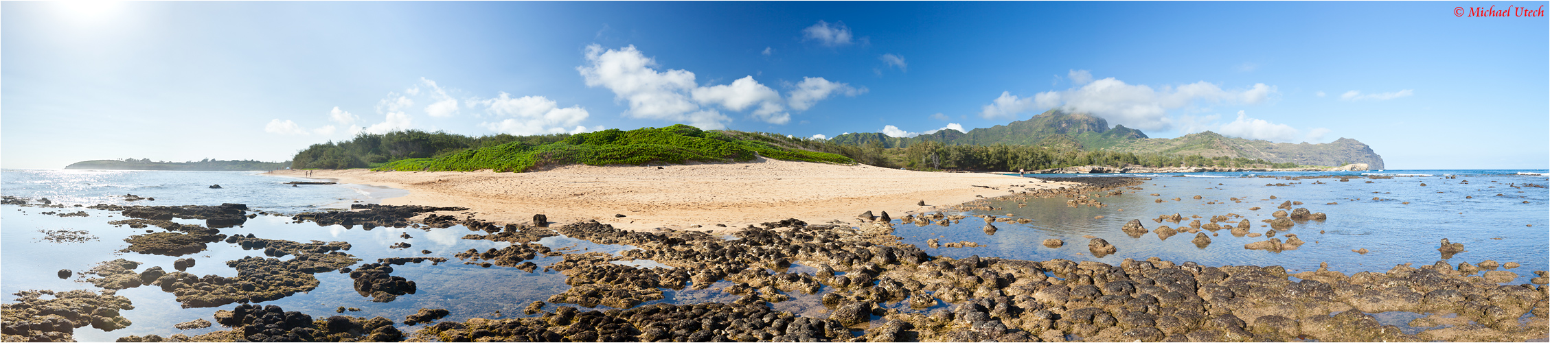 Panorama von einem alten Riff aus mit Blick zur Insel.