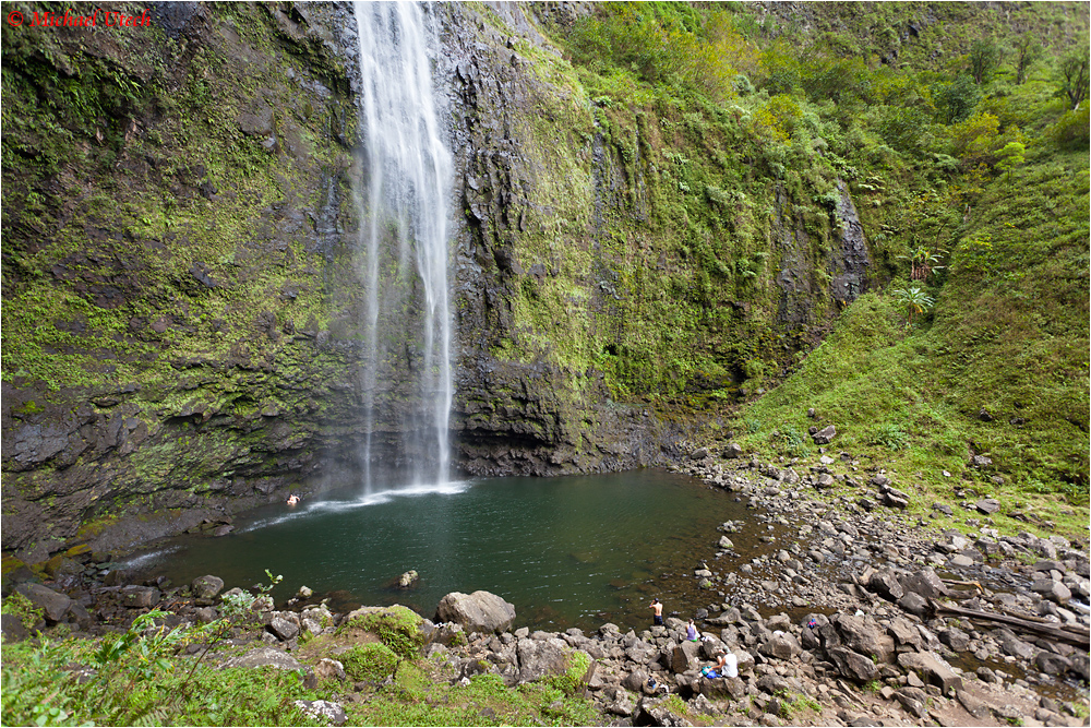 Mutige und Überhitzte schwimmen in dem kleinen See, durch Steinschläge ist das allerdings recht gefährlich.