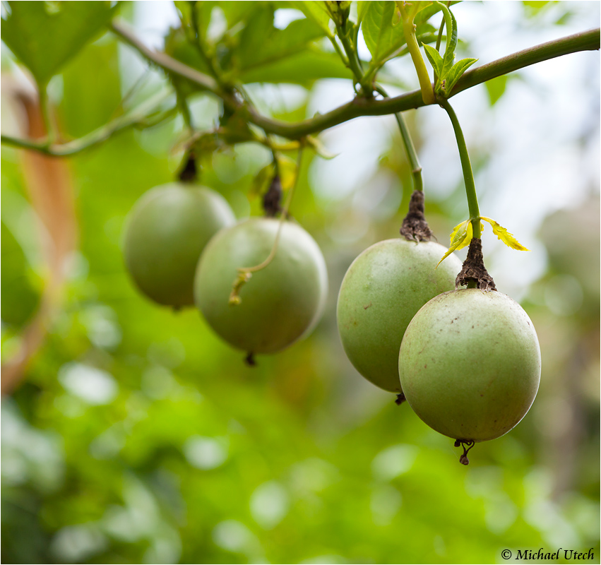 Hier ein paar Maracujas oder Passionsfrüchte, ebenfalls noch nicht reif.