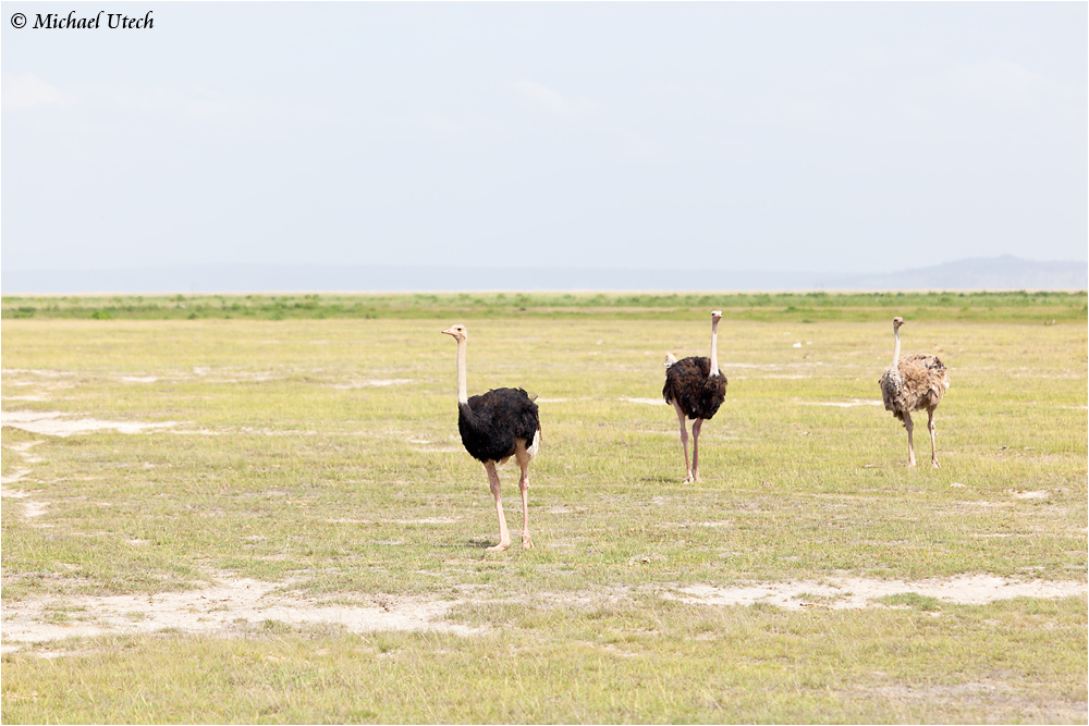 Ein paar Strauße stiefelten durch die Mittagshitze.