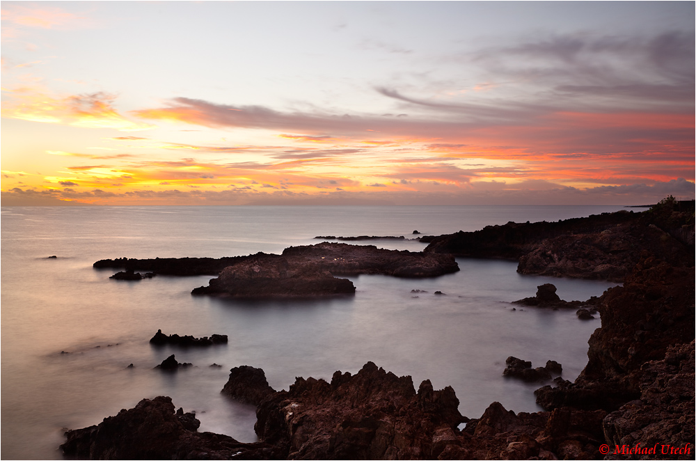 Die Wolken sind bereits in der Sonne, während diese noch hinter Teneriffa liegt.